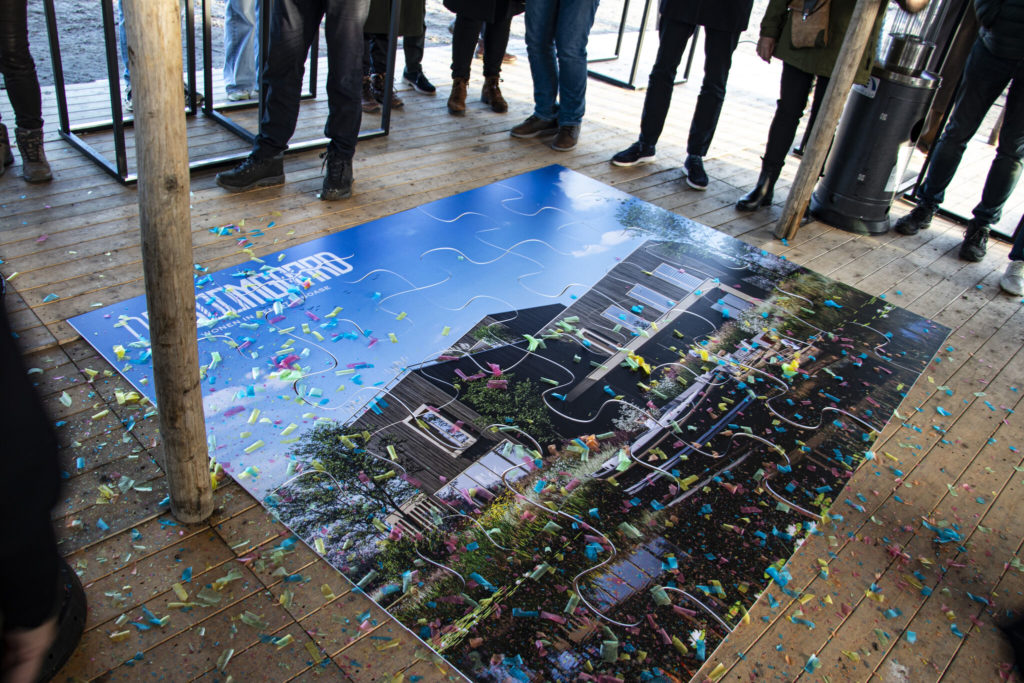 De feestelijke puzzel die werd gelegd tijdens de start bouw.